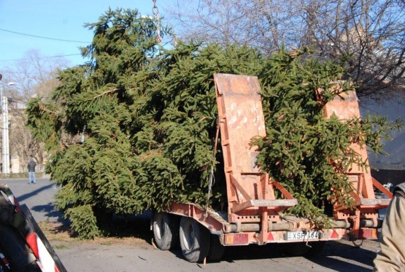 Megérkezett a város karácsonyfája a Negyvennyolcasok terére 2012. december 13.