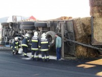Felborult a szalmabálát szállító teherautó