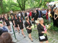 A hagyomány szerint az Asztrik téri fák lombsátorában tartották a Dózsa György Szakközépiskola ballagását április 30. délutánján.