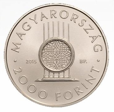 Az ábrázolástól jobbra a „Bp.” verdejel, balra a „2015” verési évszám olvasható. Az emlékérme szélén felső köriratban a „Magyarország” felirat, alsó köriratban az értékjelzés és a „Forint” felirat olvasható. A felső és az alsó köriratot középen egy-egy pont választja el egymástól.