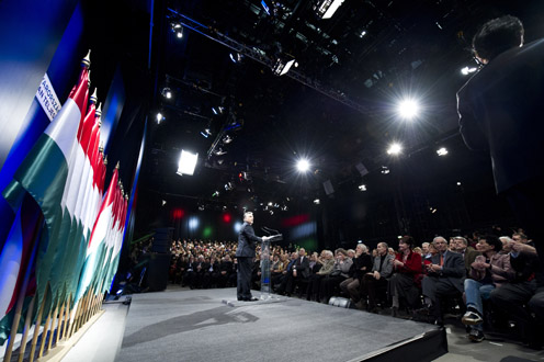 "Azóta mindent véghez vittünk, amiről a gyengeség hívei azt mondták, nem lehet. Ezzel vette kezdetét a magyarok új műve, a XXI. századi erős Magyarország megteremtése". Olyan országot építünk, ahol az emberek nem külföldiek hasznáért dolgoznak, ahol "nem bankárok és külföldi bürokraták mondják meg, hogyan éljünk, milyen alkotmányunk legyen, mikor emelhetünk béreket vagy nyugdíjakat", ahol senki nem kényszerítheti rá mások érdekeit a magyar emberekre - hangoztatta a kormányfő.
