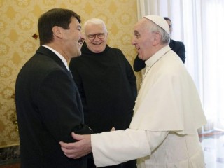 2013. szeptember 20.,péntek 14:35 |A mintegy félórás beszélgetésen a köztársasági elnök – aki családját is bemutatta az egyházfőnek – emlékeztetett arra, hogy Ferenc pápa márciusi beiktatásán is járt a pápai államban. Ferenc pápa egy vatikáni érmét ajándékozott Áder Jánosnak. A magánaudiencia egyik témája a 21. század egyik legnagyobb problémájának számító ivóvíz védelme volt.