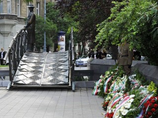 Koszorúzási ünnepséget tartottak Nagy Imre szobránál