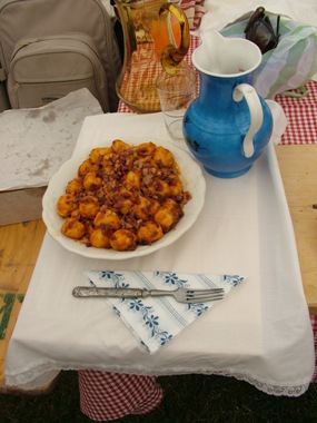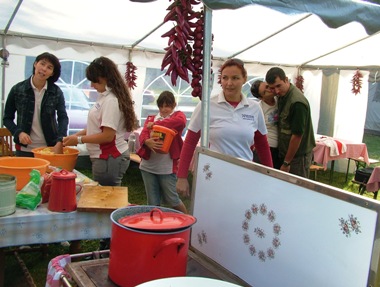 Már kora reggel nagy volt a nyüzsgés a Kalohírek sátra körül, hiszen az igazi szállási étel jó elkészítéséhez nemcsak megfelelő alapanyagokra volt szükség, hanem arra a rég elfeledett népi világra is, ami a sátor előterében újra életre kelt. Előkerült a sparhelt, a vájling, a zománcos tál, a faragott pad és a viaszos vászon ugyanúgy, mint a zsírosbödön és az alumínium villa, amelyre már csak nagyanyáink sublód fiókjában lelhetünk.
