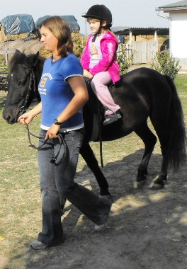 Csoporttársuk, Mezei Adél megmutatta lovaglótudását, hiszen ő már régóta lovagol. Vezetőszáron és egyedül is ügetett, lépkedett Barbie-val a szelíd pónilóval, miközben kis barátai tátott szájjal nézték. Kevéssel tizenkettő előtt fejeződött be a kedves program egy kis „paci-etetéssel”, majd felpattantak a lovas kocsira és jöhetett a jól megérdemelt ebéd az oviban.