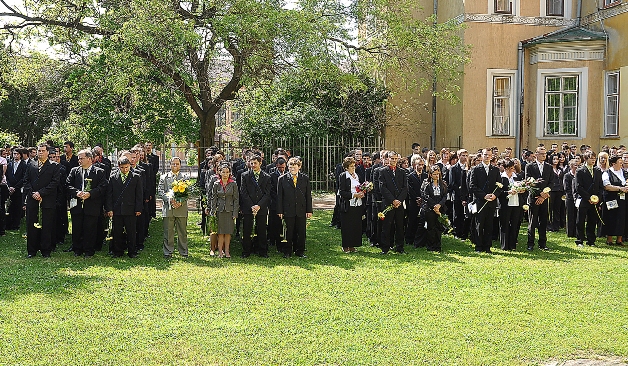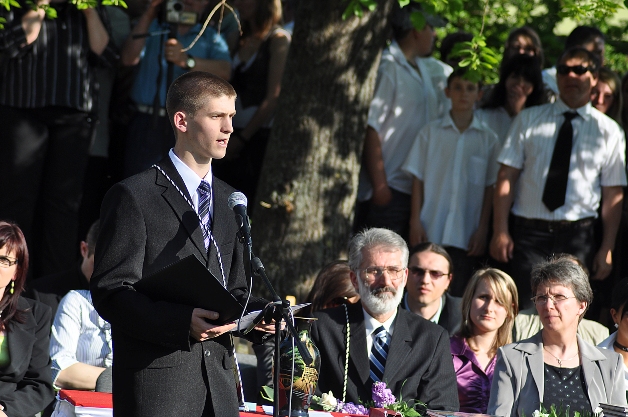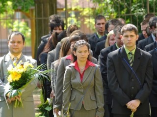 Kalocsa város legnagyobb iskolája a Dózsa György Gazdasági, Műszaki Szakközépiskola, Szakiskola és Kollégium ballagási ünnepségét most, a május elsejei ünnepség egybeesése miatt, nem az iskola előtti téren, hanem az iskola udvarán rendezte meg.