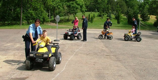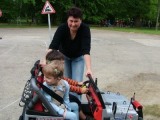 Első nap a Kunszt utcai ovisok próbálhatták ki a pályát. Répási Tamásné, a kalocsai Rendőrkapitányság sajtószóvivője hatalmas türelemmel magyarázta a mobil parkban kiállított táblák jelentését, majd a többi rendőr segítségével motorra, quadra pattantak a csöppségek, és úgy járták végig a közlekedési táblákkal, zebrával, vasúti átjáróval ellátott terepet.