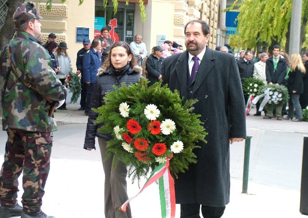 „Azon értékeket helyezzük előtérbe, amelyek összekötik és megerősítik bennünk az együvé tartozás nagyszerű érzését. A nagy kihívások kapujában, amelyben most is állunk, továbbra is összefogásra van szüksége Kalocsának. Arra van szükségünk, hogy kalocsai polgárként építsük városunkat, hazánkat, szülőföldünket, nemzetünket, mindazon eszméket, amelyért oly sokan vérüket áldozták.” – zárta ünnepi beszédét Török Ferenc, aki a Diákönkormányzat újonnan választott polgármesterével, Bolvári Katalinnal helyezte el az emlékezés virágait a börtön falán lévő 1956-os emléktáblánál.