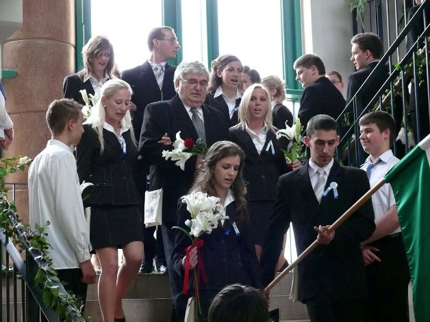 2011. május 13.,péntek 13:49 |Az iskolák közül elsőként – mint minden esztendőben – április 29-én, délután a Kossuth Zsuzsanna Humán és Kereskedelmi Szakközépiskola, Szakiskola növendékei búcsúztak. Az alsóbb éves tanulók sorfala között érkeztek az intézmény udvarára a végzős osztályok, ahol 55-en mondtak búcsút középiskolás éveiknek. A Himnusz hangjai után Guzsván Éva köszöntötte az egybegyűlteket Reményik Sándor Ballagás című versével, majd Halkai Renáta a tizenegyedikesek útravalóját adta át, méltatva a diákévek egyik legmeghatóbb, legszebb, és egyben talán legszomorúbb pillanatát, a ballagást. Jókívánságai után Papp Krisztián a végzősök nevében kissé formabontó – értő humorral átszőtt –, de az útkeresés problémáit is érintő búcsúbeszédében köszönt el a tanári kartól, az iskolától, diáktársaitól, megköszönve szüleiknek is az erőn felüli támogatást.
