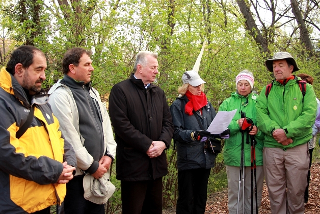 A zarándokokhoz Kalocsán többen is csatlakoztak és közel húsz fő indult el azon az alternatív útvonalon, melyet most jártak végig először a résztvevők, akik az áprilisi hóesésben Halom érintésével indultak Homokmégy irányába, majd az esti órákban Császártöltésen keresztül gyalogoltak Hajósra.