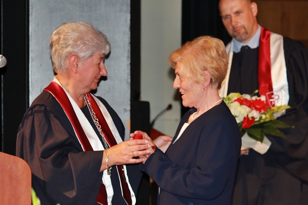 - Minden évben óriási boldogság és büszkeség nekem a diplomaátadások napja, ugyanis ezen a napon megvalósulni látom azt a célunkat, ami miatt a Tomori Pál Főiskolát létrehoztuk: hogy új életet adjunk a végzőseink kezébe. Mától ugyanis egy új élet vár önökre – folytatta Meszlényi Rózsa, aki az ünnepség keretében a Tomori Pál Főiskola Szenátusa nevében a főiskola aranygyűrűjét adományozta dr. Gál Jolán főiskolai tanárnak, nyugállományba vonulása alkalmával.
