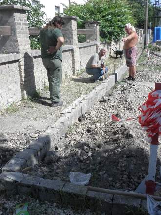 A burkolatrekonstrukcióhoz a betonüzemben előgyártott térkövet használják fel. A munkát a mezőgazdasági földutak projekt keretében beszerzett forgókotró gép és toló lap, valamint a mezőgazdasági projekt keretében vásárolt teherautó is segíti. A munkagépek naponta más munkaterületen végzik a föld és építőanyag mozgatását, elősegítve a kétszer huszonhat dolgozó kézi munkáját.