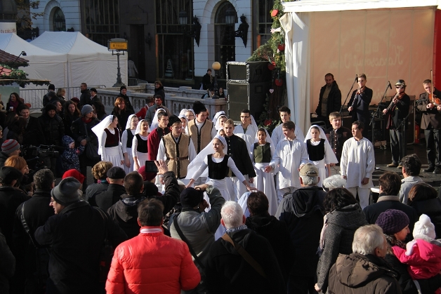 December első napján Kalocsáé volt a főszerep a fővárosban. A Budapest szívében található Vörösmarty térre kilátogatók a népzene, néptánc világán keresztül ismerhették meg hagyományainkat, népszokásainkat. Több mint 130 fő lépett tegnap a karácsonyi forgatag látogatói elé, akiknek produkcióját óriási siker övezte.