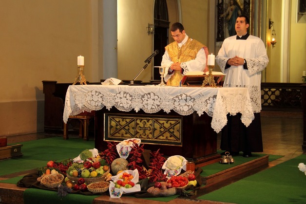Öt órakor terményáldó ünnepi szentmise volt a Szent István király (egykori jezsuita) templomban.