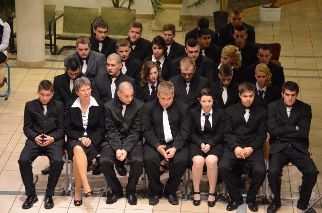 Péntek délután öt órai kezdettel tartották a Kossuth Zsuzsanna Humán és Kereskedelmi Szakközép- és Szakiskola végzőseinek szalagavató ünnepélyét a Katolikus Iskola aulájában.