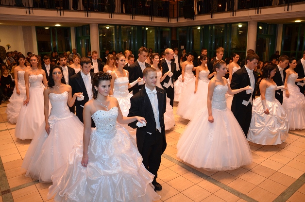 Végül minden szalagavató fénypontja, a tizenkettedikesek tánca következett. Amíg a tánchoz készülődtek, öltöztek a végzősök, a vendégek videóprojektor segítségével láthattak összeállítást a négy év alatt készült fotóikból, „Ilyenek voltunk” – szólt közben stílusosan a dal a hangszórókból. A bécsi keringőt a diákoknak Farkas Éva tanította be.