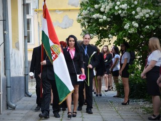 A végzős szakközépiskolai osztályok nevében Tóth Vivien, a szakiskolások részéről pedig Buknicz Eszter búcsúztak az iskolától, a tanári kartól és diáktársaiktól, felidézve a négy év emlékezetes történéseit, közösen átélt élményeit. A búcsúzó évfolyam ünnepélyes elköszönését az iskolai zászlóátadás felemelő pillanata koronázta meg, majd Bekéné Deutsch Ágnes igazgató köszöntötte az intézmény végzőseit. Meghitt szavakkal, intő bölcselettel, de diákhumorral is átszőtt gondolatokkal idézte meg a ballagó osztályok iskolai éveit, majd útra bocsátó jókívánságai zárásaként sikeres megmérettetést, eredményes érettségit kívánt a tantestület nevében is.