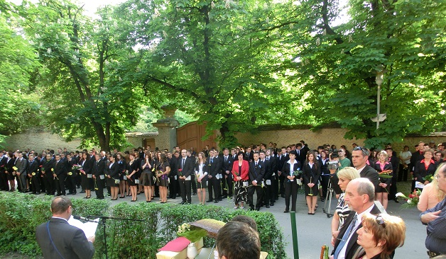 Mire énekszóval bejárták a patinás iskola épületét, búcsút intve a termeknek, az udvarnak, és kivonultak az iskola előtti térre, a 11. évfolyamosok, az iskola vezetősége és tanárai, valamint a meghívott vendégek, hozzátartozók, barátok már ott várták őket.