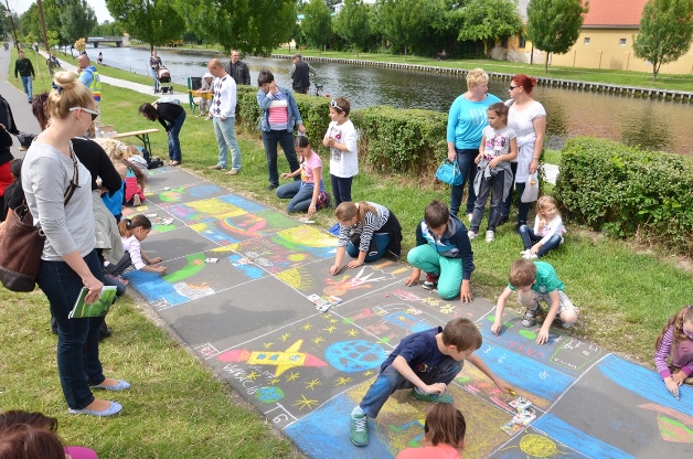 Fél háromtól a T-Dance Hip-hop Tánciskola bemutatója szórakoztatta a közönséget, majd három órától aszfaltrajzverseny volt a Kalocsai Porcelán Manufaktúra támogatásával. A gyerekeknek a vakáció témakörében kellett alkotniuk. A Benke Mónika óvónő, Bajomi Réka tanítónő és Enzsel Adél tanítónő alkotta zsűri az óvodás kategóriában Aranyos Jankát (Csokonai óvoda), Mészáros Amíra Larát (Csokonai óvoda), illetve Madarász Noelt (Kiskőrös) jutalmazta. Az alsó tagozatosok közül Ferencz Dominika (Nagyasszonyunk, 2. oszt.), Tesch Loréna (Eperföldi, 3. oszt.), Oláh Virág (Kertvárosi, 4. oszt.), illetve Gaál Izabell (Kertvárosi, 2. oszt.), míg a fölsősök közül Geiger Petra (Kertvárosi, 6. oszt.) és Vatai Attila (Kertvárosi, 5. oszt.) kapott jutalmat. A díjazottak a Kalocsai Porcelán Manufaktúra felajánlása nyomán egy-egy kalocsai bögrével lettek gazdagabbak.