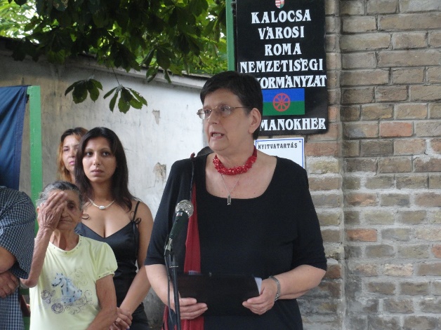 A magyar Himnusz és a Nemzetközi Cigány Himnusz után Sztojka István, a kalocsai Roma Nemzetiségi Önkormányzat elnöke köszöntötte a megjelentek, köztük a városvezetés képviselőit, és a jelenlévő túlélőt, Jakab Ilonát is. Az elnök szavai után Dargainé Panyik Márta tanár a cigányság sorsáról, gondjairól, reményeiről szóló összeállítását hallgathatták meg az egybegyűltek, akik ezt követően együtt szavalták el Radnóti Miklós Nem tudhatom című versének első versszakát.