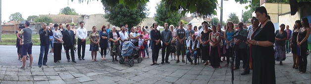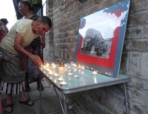 Az elnök gondolatai után gyertyákat és virágokat helyeztek el az emléktáblánál az elhunytak tiszteletére, miközben Lakatos Gabriella sirató éneket adott elő. A megemlékezés utolsó momentumaként Jakab Ilona Maron, a holokauszt (cigány nyelven porajmos) megjelent túlélője idézte fel a hat éves gyermekként átélt eseményeket.