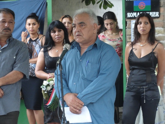 Ezután Rostás László, az Esély Cigány Módszertani Központ elnöke szólt a megjelentekhez. Véleménye szerint a romák II. Világháború előtti és közbeni tragikus meghurcoltatására, a vészkorszakban velük szemben történt szégyenteljes, emberellenes események nagyobb figyelmet érdemelnének. Hangsúlyozta: a 70 évvel ezelőtt történteknek példaként kell szolgálnia mindannyiunk számára, hogy ilyen szörnyűségek soha többé ne történhessenek.