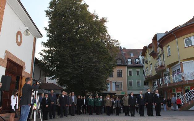 A továbbiakban Török Ferenc, Kalocsa polgármestere mondott megemlékező beszédet. Fölidézte a 165 évvel ezelőtti nemzeti gyásznapot és az ahhoz vezető eseményeket, kiemelve, hogy óriási túlerővel szemben álltak helyt eleink, és áldozatuk nem volt hiábavaló, hiszen mindazok után a polgári fejlődésnek már nem lehetett gátat vetni, és a nemzeti önrendelkezés, a szabadság eszméjét sem tudta letörni a császári hadigépezet a szabadságharc leverésével, sem a véres megtorlásokkal.