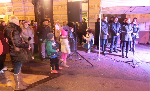 2014. december 09.,kedd 11:53 |„Gyülekeznek a lángok, a koszorún nemsokára meggyullad a második gyertya, amely arra emlékeztet minket, hogy az angyal hírül adta Máriának, majd Józsefnek is az örömhírt, hogy ők nevelhetik föl Isten Fiát, Jézust” – hangzott Fekete Antalnak Kalocsa Város Önkormányzata és a Kalocsai Városmarketing Kft. nevében elmondott köszöntője, majd a Bem Apó utcai óvodások két verset szavaltak el.