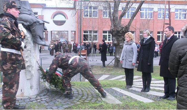 A misét követően a templomból és máshonnan érkezőket a Magyar Honvédség 5. Bocskai István Lövészdandár Hódmezővásárhelyi Helyőrségi Zenekara fogadta az alkalomhoz illő zeneszóval, majd Fekete Antal konferanszié rövid köszöntője után az ő előadásukban hangzott el a Himnusz, a megemlékezés lezárásaként a Szózat, és a koszorúk, mécsesek elhelyezésének idején is ők adtak zenei aláfestést.