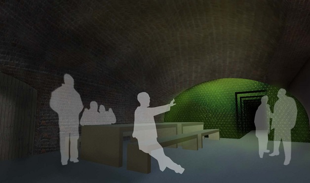 A kiállítótér középvonalában kialakítandó lépcsőn lehet majd az épület patinás pincéjébe jutni. Itt ugyan régente nem volt borospince, téglaarchitektúrás boltozott pinceként mégis stílusos helyszínt biztosít majd a Duna Borrégió termőhelyeinek és borainak bemutatására, hiszen az ilyen pincék a legnemesebb borospince-építő hagyományainkat testesítik meg. A terv szerint ezért a téglaboltozat nem is kap burkolatot, hadd érvényesüljön ez a hamísítatlan borospince-hangulat.