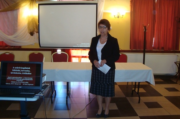 A pályázati forrásból megvalósuló (TÁMOP-6.1.2-11/3-2012-0056) projekt szakmai napjára érkező vendégeket dr. Vadász Mária, a Kalocsai Szent Kereszt Kórház vezetője köszöntötte, majd rövid áttekintést adott a kitűzött célok eddigi eredményeiről, azok megvalósulásáról.