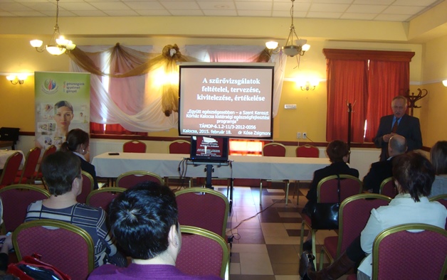 Dr. Kósa Zsigmond prezentációjában a szűrővizsgálatok feltételrendszeréről, tervezéséről, kivitelezéséről, majd értékeléséről értekezett. Előadásában kitért a daganatok kialakulásának folyamatára, elemezte az egyes betegségek lefolyásának és a szűrővizsgálatok kapcsolatát, de mások mellett kitért az egyes szűrővizsgálati tesztekkel szemben támasztott követelményekre is. A szűrővizsgálatok jogi hátterének megvilágítása mellett szó esett az emlőszűrés, a méhnyakrákszűrés, a vastagbél daganat szűrésének eredményeiről. Mint hangsúlyozta, az alapellátásnak igen nagy szerepe van a szűrővizsgálatok végrehajtásában.