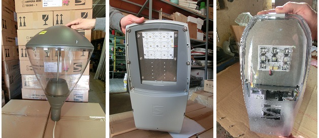Tegnap végre megérkeztek Kalocsára a lámpatestek. A Tungsram Schreder Zrt. modelljei részben hazánkban, részben Spanyolországban készültek. Városunkban ötféle típus kerül fölszerelésre, közülük hármat sikerült is lencsevégre kapnunk.