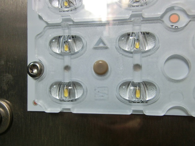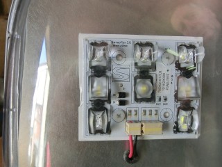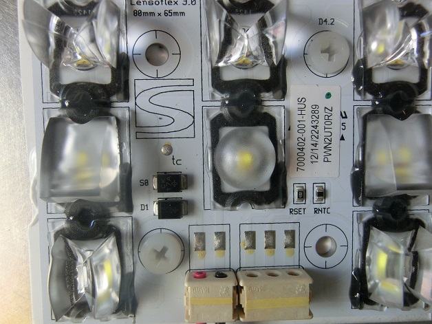 A fényt lámpatestenként 8, 16, illetve 24 alig gombostűfej nagyságú LED fényforrás biztosítja. Ezeket apró, néhány milliméteres fénytörő bütykök egészítik ki. Ezekre a bütykökre biztosan van szakszerűbb kifejezés is, de föltételezem, velünk együtt olvasóink többsége sem ismerné. Mindenesetre ezek hivatottak a LED-ek fényét a lehető legegyenletesebben elosztani.