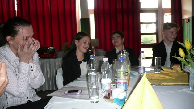 Hosszas várakozás után, huszadikként a 3 fős képviselőcsapat végre előadhatta az előzetesen elkészített és begyakorolt bemutatóját a projektötletükről a mentorszobában. Mi a többi csapattaggal az aulában szurkoltunk nekik, izgultunk értük. A folyosót fürkészve először Török Krisztina örömkönnyektől úszó arcát láttuk meg, aki osztályfőnökükként, a versenyben támogató pedagógusként (előfeltétele volt az indulásnak) felkészítette és bekísérhette őket a megmérettetésre.