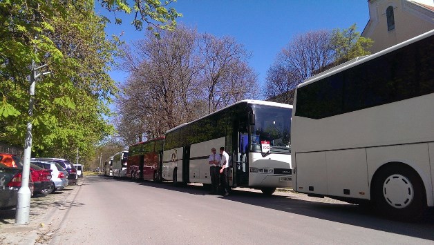 A Dózsa György Szakközép és Szakiskola előtti útszakaszon szorult be vagy 8-10 autóbusz, börleszkbe illő módon. Közben az arra haladó személygépkocsi-forgalom egyetlen szűk forgalmi sávra korlátozódott, ahol busz már nem is fért volna el. Szóval, autózva lépésben lehetett haladni, egész addig, amíg minden résztvevő egy irányba akart…