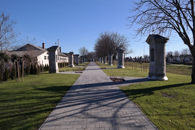 Amint arról annak idején már tájékoztattunk, akkor megépültek a stációk, a dombművek fölújítása megtörtént, ezek raktáron várják a beépítésüket. Fölszerelték a világítást, kiépültek a térkő burkolatok, és befejeződött a parkosítás, továbbá oda illő kerítés is épült.