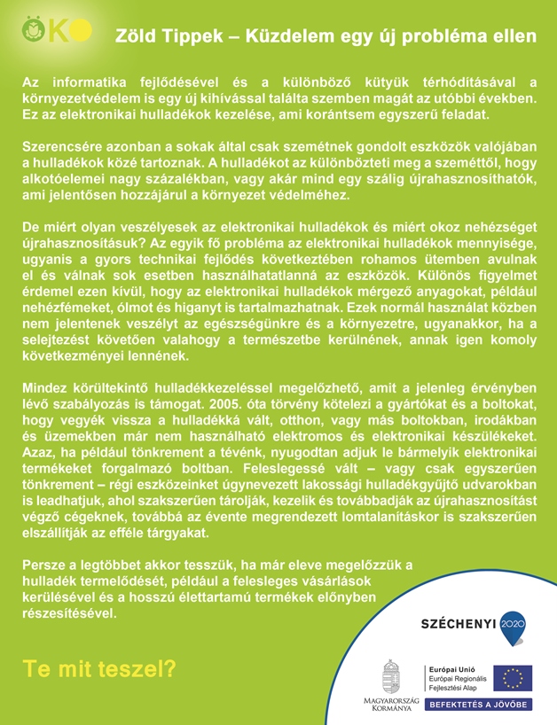 Zöld Tippek – Küzdelem egy új probléma ellen