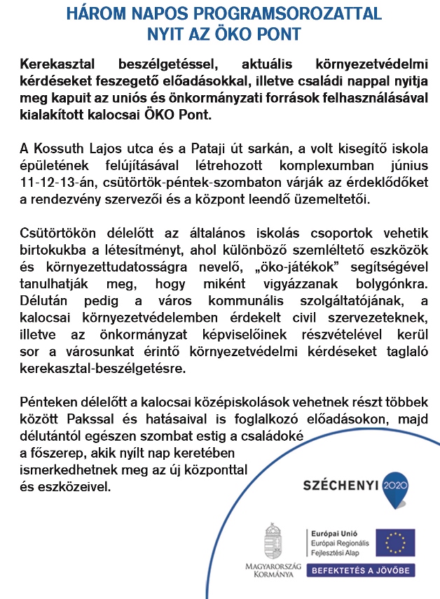 Kerekasztal beszélgetéssel, előadásokkal és családi nappal nyitja meg kapuit június 11-12-13-án (csütörtöktől szombatig) az ÖKO Pont.