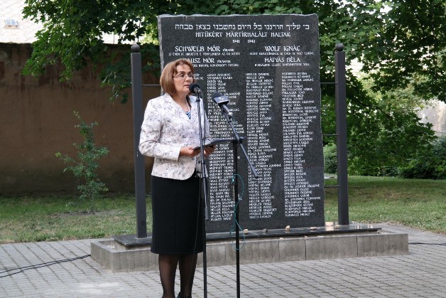 A megemlékezés ünnepi szónoka, dr. Magóné Tóth Gyöngyi, a Kalocsai Kulturális Központ és Könyvtár intézményvezetője volt, aki a Lázár család történetén keresztül állított emléket a zsidó közösség tagjainak.