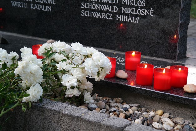 A megrendítő, kommentár nélküli történetet követően a megemlékezők az áldozatok tiszteletére elhelyezték mécseseiket és kavicsaikat az emlékműnél.