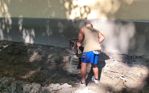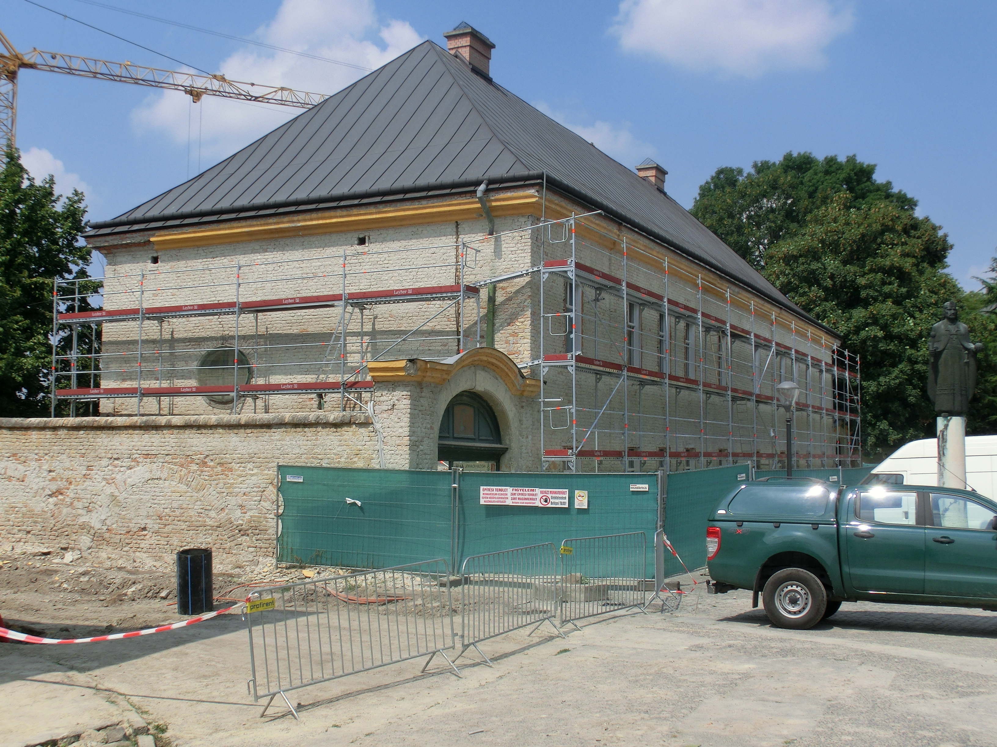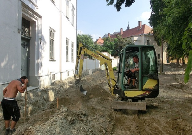 Összeérnek a munkaterületek: Az egykori paplak udvarával közvetlenül szomszédos közterületen az önkormányzat projektje zajlik. A munkát egyrészt nehezíti, hogy a területek megközelíthetősége, a logiszotkai műveletek akadálytalansága érdekében a kivitelezőknek folyamatosan alkalmazkodniuk kell egymáshoz, másrészt arra is volt már pálda, hogy éppen fölszabadult munkagéppel, munkaerővel egymás munkáját segítették az építők.