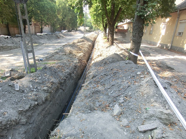 Ebbe történetesen ivóvízvezeték kerül, de a munkafolyamat lényege a szennyvíz- és csapadékvíz-elvezető csatornák, valamint a talajba süllyesztett elektromos, vagy gázvezetékek létesítésénél is ugyanaz.