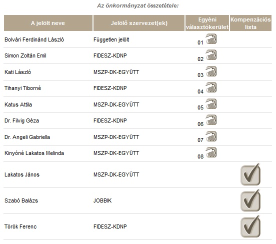 Az önkormányzat összetétele az eredmények alapján így alakul: