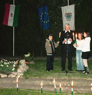 A műsor után fáklyákkal vonult át a nézőközönség a Hősi parkba, ahol dr. Fehér Zoltán ünnepi beszéde után, Halász Zsolt plébános megáldotta a koszorúkat és imát mondott a hősökért. A közös ima után sorban elhelyezték megáldott koszorúikat az önkormányzat, a kisebbségi önkormányzatok és a civil szervezetek.