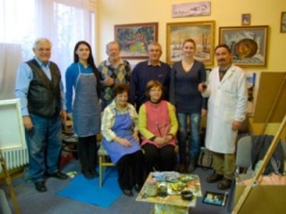 – Sose vágytunk nagy dolgokra. Fejlődni önmagunkhoz, nem pedig a nagyokhoz képest szeretnénk. Akinek az alkotás öröm, megtalál bennünket. Mi bárkit szívesen látunk. Nézzen csak körül: Juliska néni varrónő volt régebben, János, ott a sarokba szorítva, már közelebb állt a festékes holmikhoz, mint a többiek, mert az ő szakmája szobafestő-mázoló, hiszen rájött, hogy mások nagyszobájának falára mégsem illik csendéleteket festeni, így hát nálunk kötött ki. Anita újoncnak számít, néhány hónapja talált ránk. Ő például fogtechnikus, de Niki fodrászként végzett, most virágkötőnek tanul. Vagy itt van a 68 évesen is nagyon aktív Viczay Lajos bácsink, aki életműdíjas fotográfus, de egy ideje a festészet is foglalkoztatja – regéli Sáfrán Ferenc.
