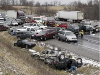 Nyolc ember megsérült, amikor kedden a hóesésben 41 gépkocsi egymásba csúszott az I-75-ös autópálya Kentucky állambeli szakaszán.