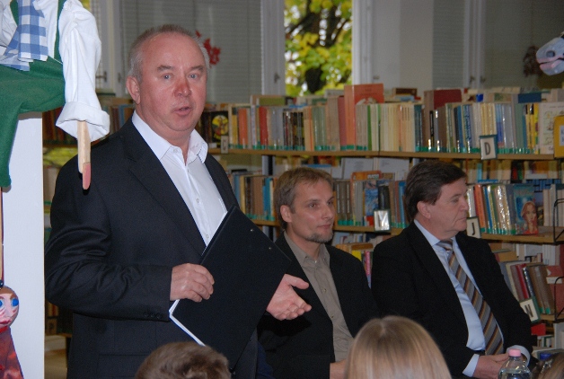 Simon Zoltán köszöntőjét követően Szabó Árpád, a kalocsai színház igazgatója szólt a megjelentekhez. A nyelvvel, olvasással, illetve a tájnyelvvel kapcsolatos, sok humorral átszőtt gondolatai mellett minél több olvasásra bíztatta hallgatóságát. – Használjátok a facebookot, meg a mobiltelefont, de vegyetek elő minden nap, legalább egy rövid időre egy-egy könyvet és képzeljétek el az ott leírtakat. Higgyétek el az sokkal színesebb és izgalmasabb, mint amit az internet adhat! – mondta Szabó Árpád, aki arra is utalt, hogy a szülőktől hallott élő beszéd milyen fontos szerepet tölt be gyerekeik anyanyelvi fejlődésében.