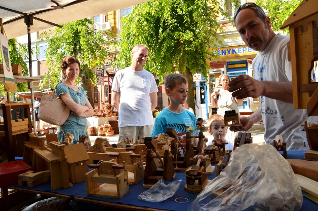 A kézműves mesterek szombaton kilenc órától nyitották meg a nagyközönség számára a sétálóutcában felállított pavilonjaikat, és egészen vasárnap délutánig kínálták portékáikat. Fazekas és kékfestő mesterrel, mézesbábossal, fafaragóval, késessel, bőrművessel, méhésszel csakúgy találkozhatott Kalocsa apraja nagyja, mint fajátékossal, mézeskalácsossal, kecsketejes szappankészítővel, szalmással, vagy borásszal, de a kézimunka és horgolás késztermékeinek látványába is belefeledkezhettek az arra járók. A gyerekek lufit hajtogathattak és kézműves foglalkozáson is részt vehettek szombaton délelőtt. E közben ugyanitt fellépett a Bolyki Sára és Borbény Dani alkotta ének-gitár jazzduó, a Németh Kvartett és a Királyi Fagottosok.
