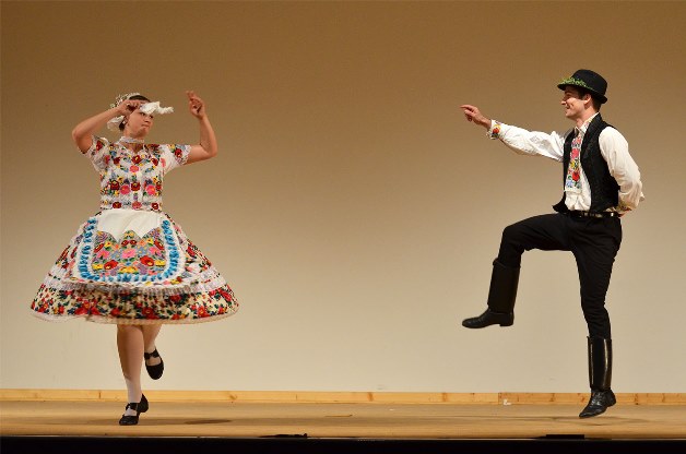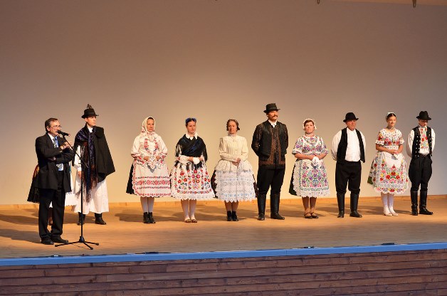 Romsics Imre tíz népviseletbe öltözött táncos segítségével szemléltette, hogyan változott az évszázadok során a kalocsai hímzés. Az 1848-49-es, jobbágyfelszabadítás utáni időktől indulva kezdte a történeti áttekintést, amikortól a kalocsai parasztok elkezdték azokat a ruhákat is megvásárolni, amit korábban nem engedhettek meg maguknak.
